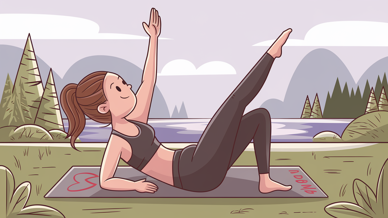 - Start in a side plank position with your right forearm on the ground, your body in a straight line, and your left arm extended toward the ceiling.